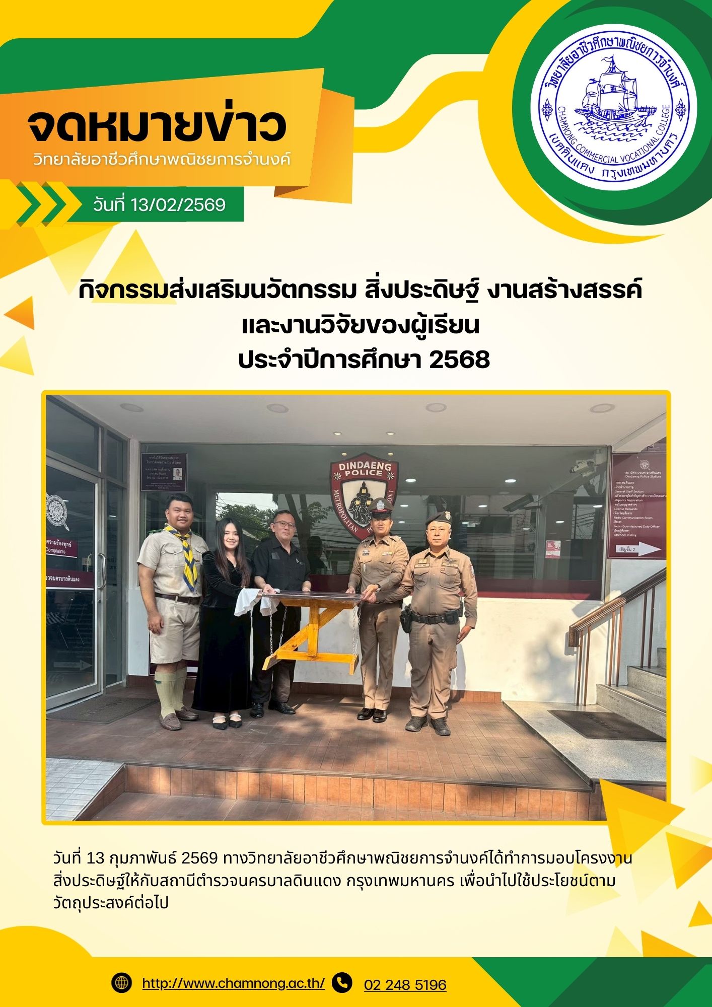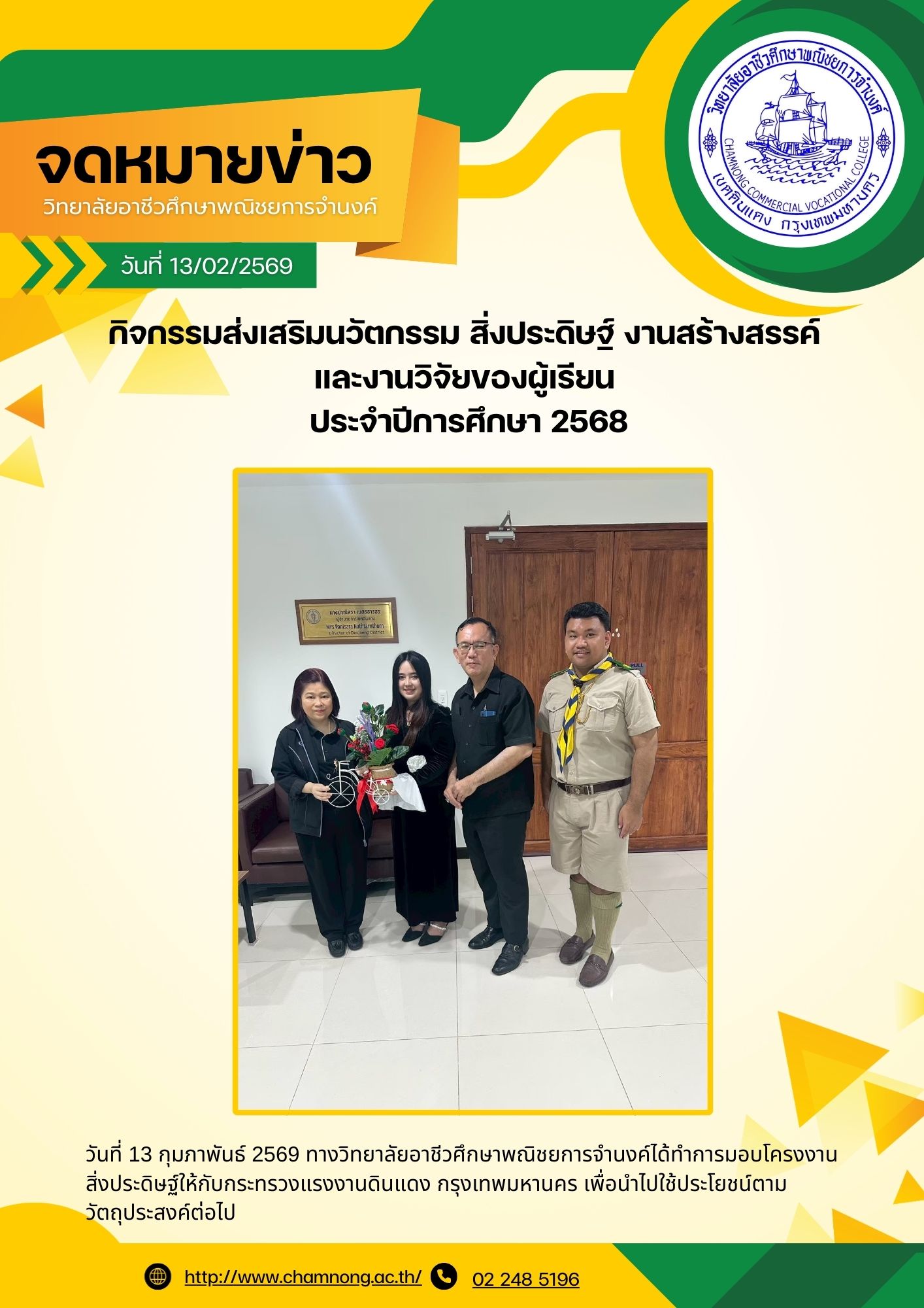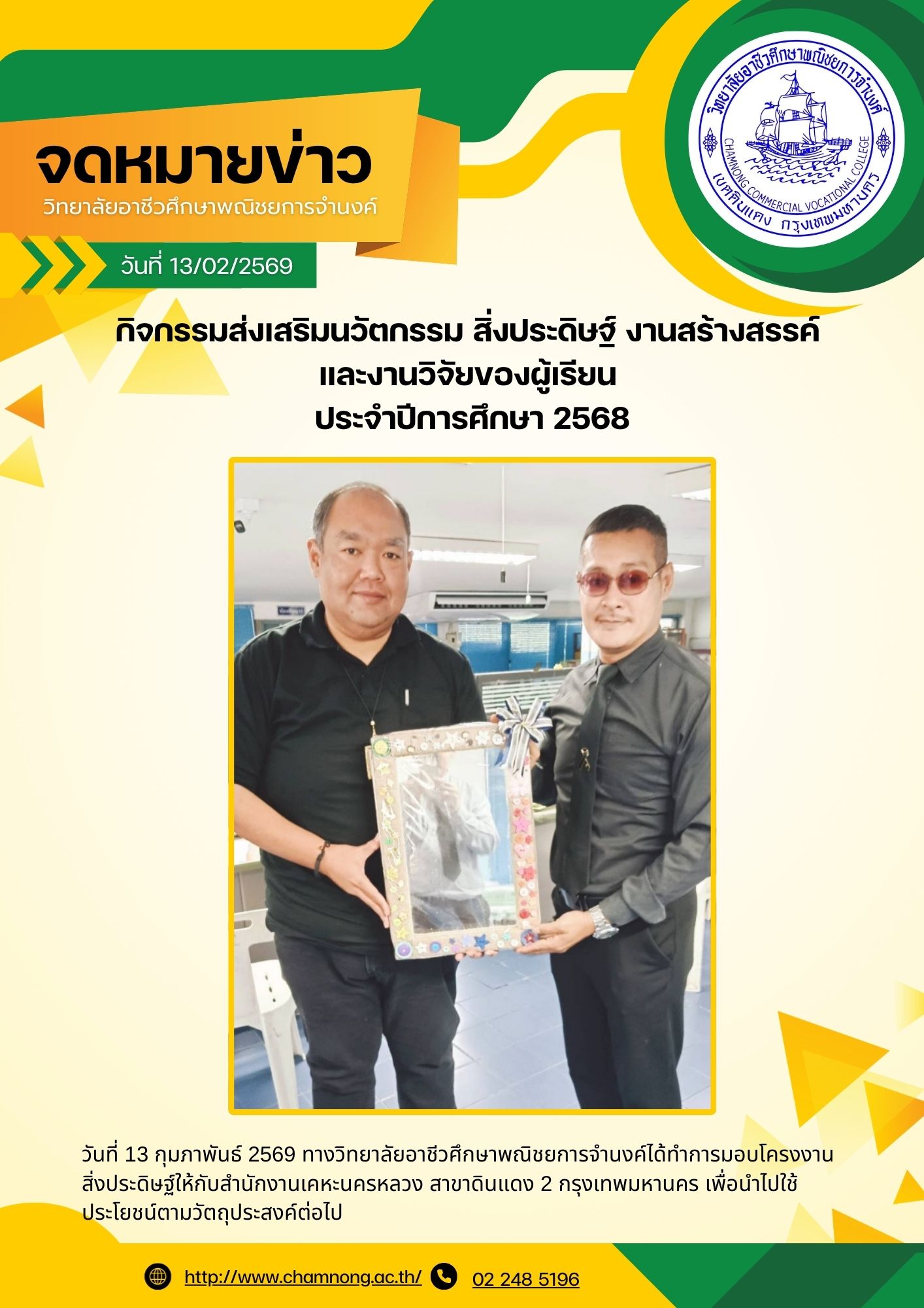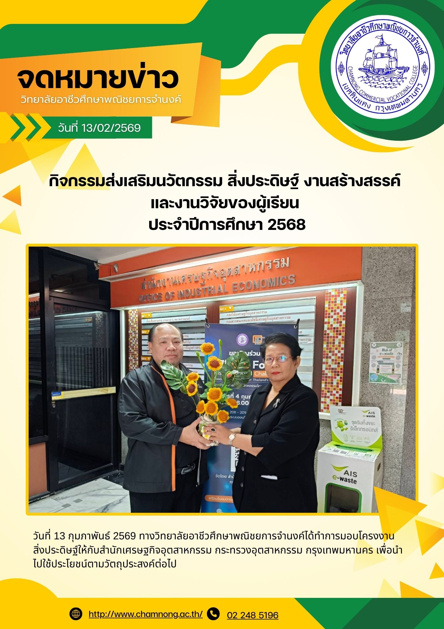 กิจกรรมส่งเสริมนวัตกรรม สิ่งประดิษฐ์ งานสร้างสรรค์ และงานวิจัยของผู้เรียน ประจำปีการศึกษา 2568
